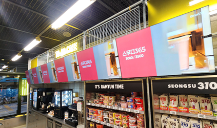 입점 고객 100% 노출되는 계산대 후면 대형 사이니지